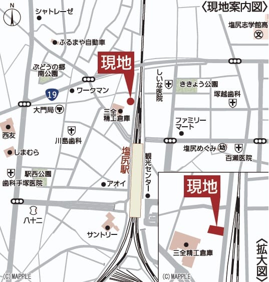 電車: 篠ノ井線塩尻駅 距離500m 徒歩7分 車2分 |