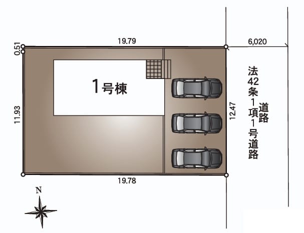 方角:東 道路幅員:6.02m 公私区分:公道 |