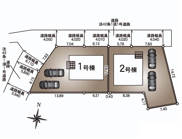 方角:北 道路幅員:4m 公私区分:公道 |