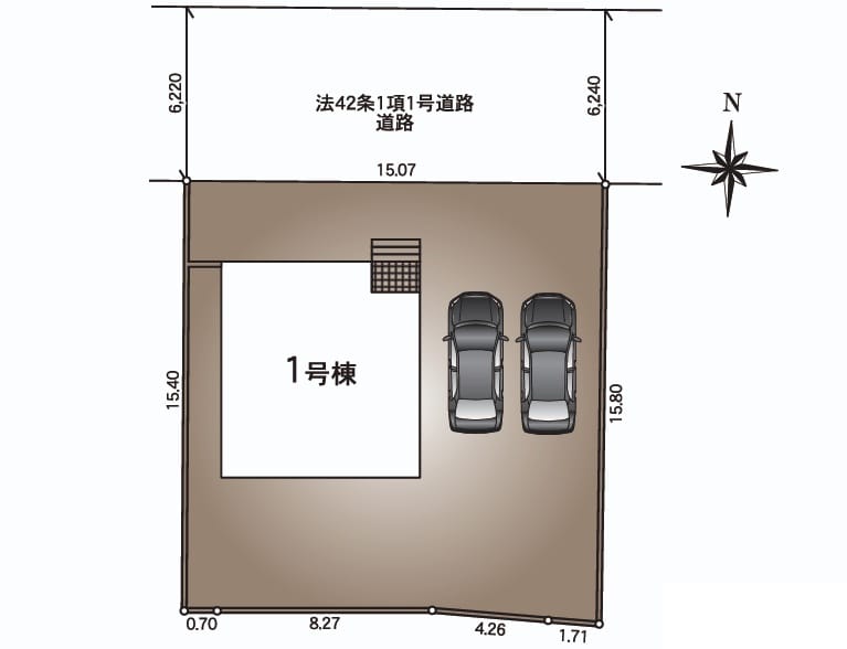 方角:北 道路幅員:6.22m 公私区分:公道 |